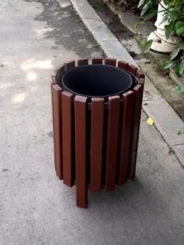 Cos de gunoi stradal cu elemente decorative din lemn de brad tratate impotriva factorilor de risc externi.